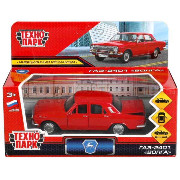 Машина металл ГАЗ-2401 ВОЛГА длина 12 см, двери, багаж, инерц, красный, кор. Технопарк