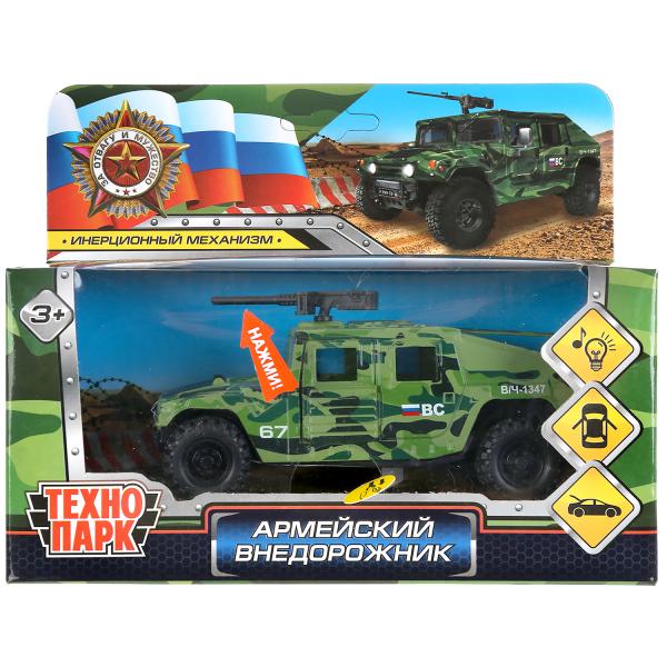 Машина металл свет-звук АРМЕЙСКИЙ ВНЕДОРОЖНИК 12 см, двер, баг, камуф, кор. Технопарк