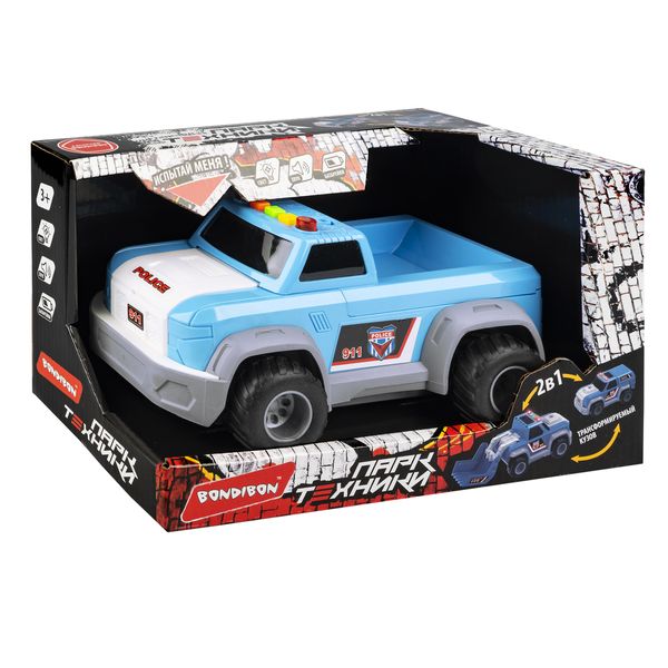 ДЖИП САМОСВАЛ 2в1 с трансформируемой формой кузова на батарейках от Bondibon – отличный подарок для маленьких любителей скорости! Дети будут в восторге от двух машин в одной со светом и звуком серии Парк Техники! Переделывайте внедорожник в самосвал и наоборот сколько угодно раз! Для того, чтобы машинка начала движение, удалите защитный язычок из отсека с батарейками. С помощью трех кнопок на кабине включите свет и звук. В процессе веселой игры ребенок получит огромное удовольствие и разовьет зрительно-моторную координацию движений, пространственное мышление и внимание. О качестве и безопасности позаботился Бондибон. Возраст 3+ 3 батарейки АG13 (входят в комплект) Соберите коллекцию машинок на батарейках серии Парк Техники и устройте веселые соревнования с друзьями!