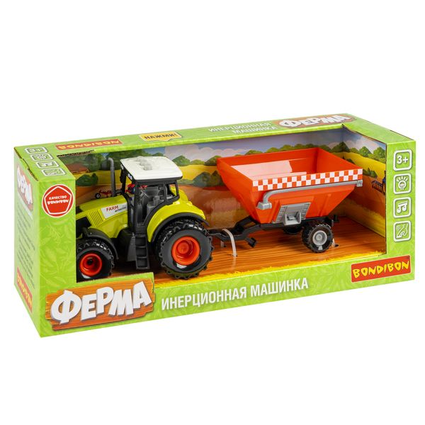 Инерционная машинка Bondibon «СЕЛЬСКОЕ ХОЗЯЙСТВО», свет и звук, трактор красный прицеп