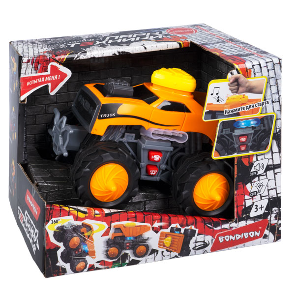 Танцующий ДЖИП серии ПАРК ТЕХНИКИ от Bondibon – отличный подарок для маленького мальчика! Дети будут в восторге от многофункциональной оранжевой машинки со светом и звуком! Испытайте внедорожник на больших колесах в действии! Нажмите желтую кнопку, и Вы услышите приветственный сигнал. С помощью красных кнопок выберите одну из 4 функций: звук мотора; машинка танцует вперед – назад под музыку; движение с характерным звуком на короткую или дальнюю дистанцию (нажмите на кнопку 1 или 2 раза); задний ход. А еще джип от Бондибон крутится на 360 градусов, если установить его вертикально на одно колесо. Повторно нажмите большую желтую кнопку для запуска функции. Авто устремится вперед на 2 задних, 2 боковых или 4 колесах, а танцевать и ехать назад оно может в обычном или боковом режиме. Через 150 секунд бездействия игрушка выключится автоматически. Придумывайте разные сюжеты и развивайте координацию и пространственное мышление ребенка. Возраст 3+ 3 батарейки х 1,5В АА (в комплект не входят)