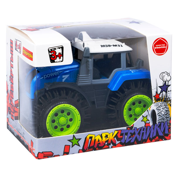 Трактор-перевёртыш 4WD на батарейках, Bondibon "Парк Техники", ВОХ 11х8х8,5 см, цвет синий