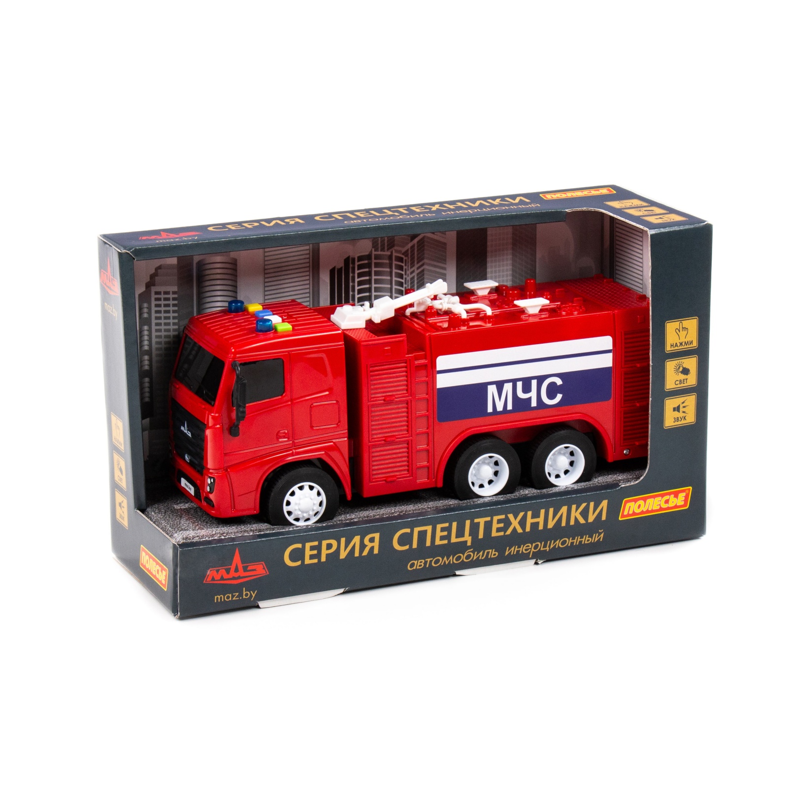 Автомобиль-пожарный инерционный МАЗ (со светом и звуком) (в коробке)