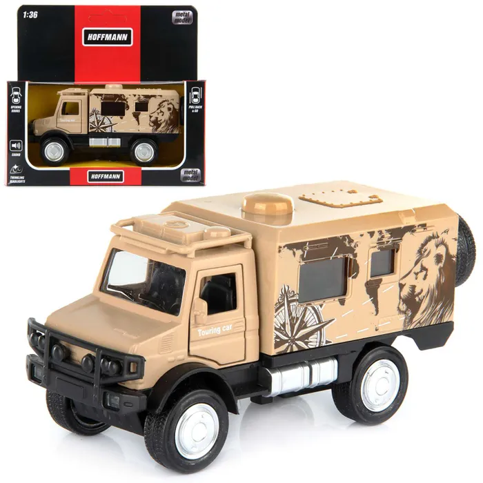 Грузовик металлический инерционный ИССЛЕДОВАТЕЛЬСКАЯ ЭКСПЕДИЦИЯ 1:36, свет, звук, HOFFMANN, 90150