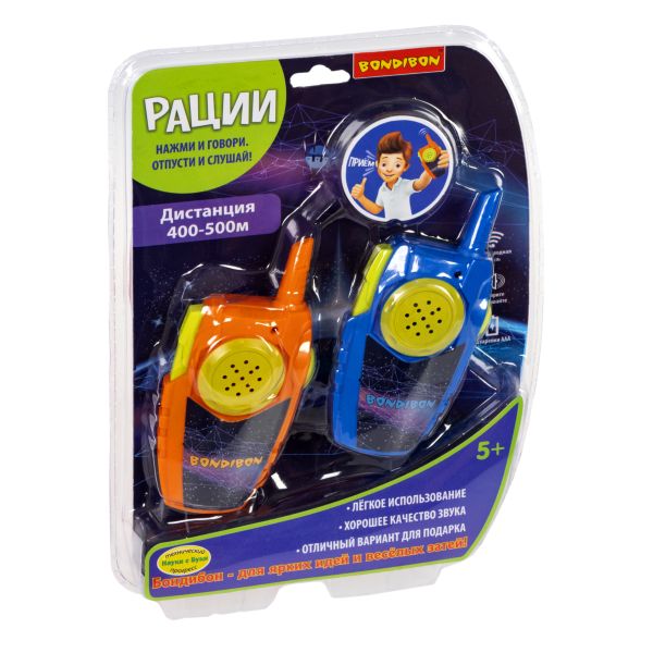 Первый, первый, я - второй. На связи! Вы всегда будете на связи с веселыми рациями по типу walkie talkie от Bondibon! С помощью рации ребенок погрузится в захватывающую игру целиком, сможет держать связь с другом на расстоянии, решать необходимые задачи не приближаясь друг другу. С такой игрушкой дети весело проведут время, играя в прятки, шпионские игры или проходя с друзьями квесты. Активные ролевые игры отвлекут ребенка от сидения с планшетом или телефоном, подарят хорошее настроение, помогут в развитии коммуникативных навыков и фантазии. Играть просто! Нажми кнопку на рации и говори. Затем отпусти кнопку и слушай! Отличная связь на дистанции 400-500 метров, удобный диапазон частот 446,0 МГц, 1 канал. В комплекте 2 рации оранжевого и синего цветов. Вам понадобятся батарейки AAA по 3 штуки в каждое переговорное устройство. Возраст 5+. Серия " Технический прогресс Науки с Буки " Рации отличный вариант подарка мальчикам, девочкам, а также туристам и любителям рыбалки разного возраста.