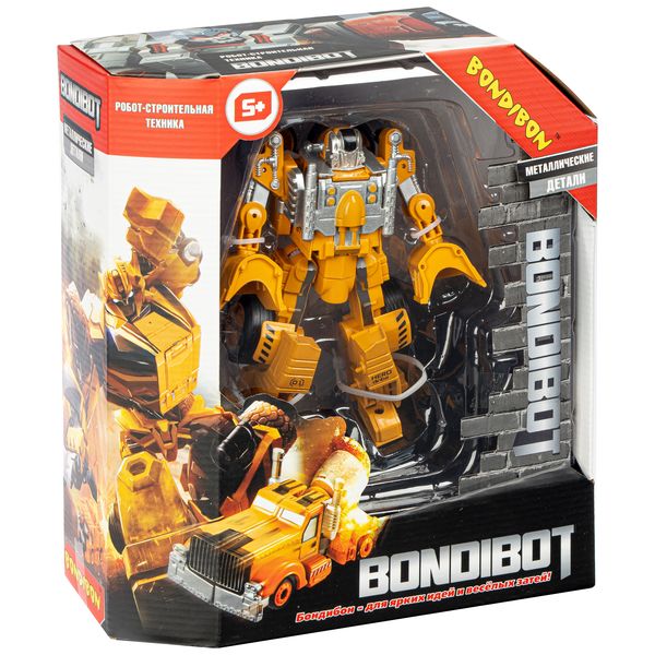 Трансформер 2в1 BONDIBOT робот-строительная техника (трактор с ковшом), метал. детали, Bondibon