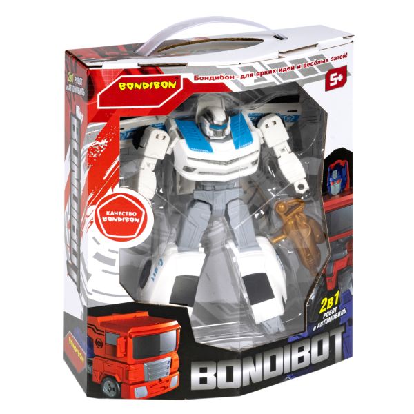 Трансформер 2в1 BONDIBOT Bondibon робот-автомобиль, белая полиция, BOX 20,5x24,5х9 см.