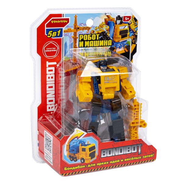 Пополните свою коллекцию трансформеров 2 в 1 от BONDIBOT! Две игрушки в одной от Bondibon надолго заинтересуют ребенка. Только представьте, яркого желтого робота легко превратить в гусеничный трактор с ковшом, а затем вновь сделать любимого героя комиксов и мультфильмов! Собирать и разбирать игрушку можно сколько угодно раз. Придумывая различные сюжетно-ролевые игры с трансформером, дети разовьют воображение, мелкую моторику, логику, пространственное мышление и расширят кругозор. Ребенок узнает названия и назначение строительных и дорожных машин. Детям непременно захочется также пополнить свой парк техники трансформерами BONDIBOT с автокраном, дорожным трактором с ковшом, бетономешалкой и гусеничным экскаватором. Ведь из пяти моделей можно сделать большого робота и подъемный кран! Игрушка изготовлена из безопасных материалов. Рекомендуемый возраст 5+ Соберите свою коллекцию трансформеров 2в1 от Bondibon!