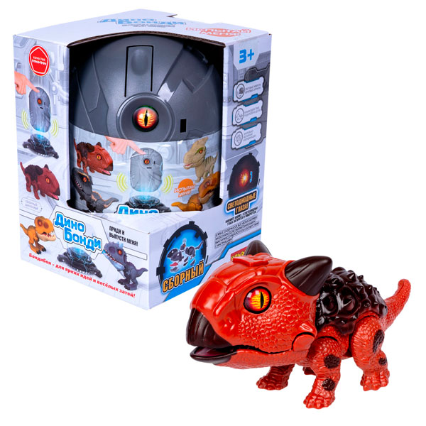 Сборный динозавр Дино Бонди со светом и звуком, анкилозавр, тм Bondibon, BOX 13x13x17,6 см.