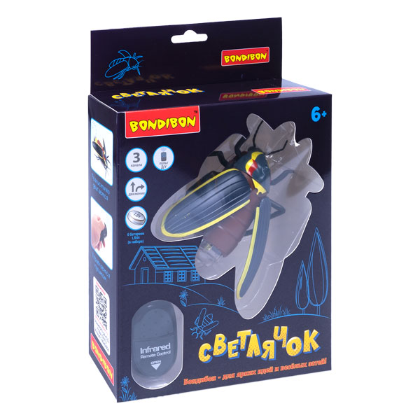 Игрушка на пульте управления СВЕТЛЯЧОК от Bondibon станет отличным подарком для юного любителя биологии! Реалистичная светящаяся игрушка на батарейках двигается вперед и поворачивается на 360 градусов! Изучайте мир животных и насекомых в увлекательной форме! Включите игрушку и направляйте СВЕТЛЯЧКА с помощью пульта. Наблюдайте за быстрыми движениями и реалистичным свечением насекомого. Функция автоматической демонстрации дает возможность изучить поведение СВЕТЛЯЧКА. Установите демо режим, удерживая одновременно кнопки движения на пульте в течение 3 секунд. Расправить крылышки насекомого можно руками. 3 канала управления дают возможность играть сразу двумя или тремя такими игрушками. В игровой форме развивайте эмоциональное и зрительное восприятие, память, концентрацию внимания у детей, а также интерес к миру животных и насекомых. Возраст 6+ Батарейки 6шт. LR44 (в наборе) Соберите коллекцию развивающих игрушек на пульте управления от Бондибон!