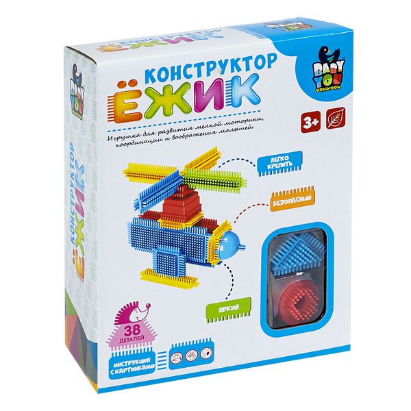 Ёж колючками оброс, для чего же? Вот вопрос! Дайте волю фантазии с КОНСТРУКТОРОМ "ЁЖИК" ВЕТОЛЕТ серии Baby You от Bondibon! Яркие разноцветные детали выполнены из качественного пластика, приятного на ощупь. Благодаря специальной игольчатой системе соединений и крупному размеру, детали конструктора удобны для детских пальчиков и легко соединяются между собой, а рельефная поверхность оказывает массажный эффект на пальцы и ладони. Этот набор для конструирования обеспечивает тактильное развитие и стимулирует двигательные навыки. Разнообразие геометрических форм и цветов позволят создать не только вертолет по инструкции, но и другие модели, развивая фантазию и креативность. Конструкторы для малышей Бэби Ю отличаются безопасностью материалов, продуманной комплектацией деталей и соответствуют высоким стандартам качества бренда Бондибон. КОНСТРУКТОР "ЁЖИК" ВЕРТОЛЕТ развивает мелкую моторику, воображение, цветовосприятие и навыки моделирования. Состав набора: 38 деталей. Возраст: от 3 лет.