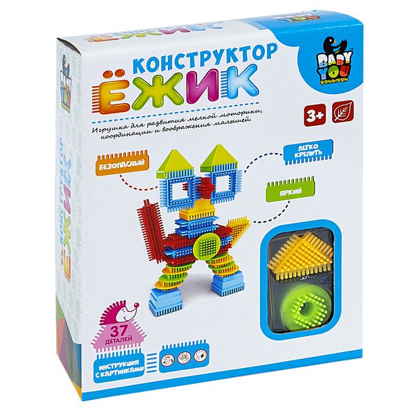 Конструктор игольчатый для малышей "ЁЖИК" КОТ 37 деталей, Baby You Bondibon