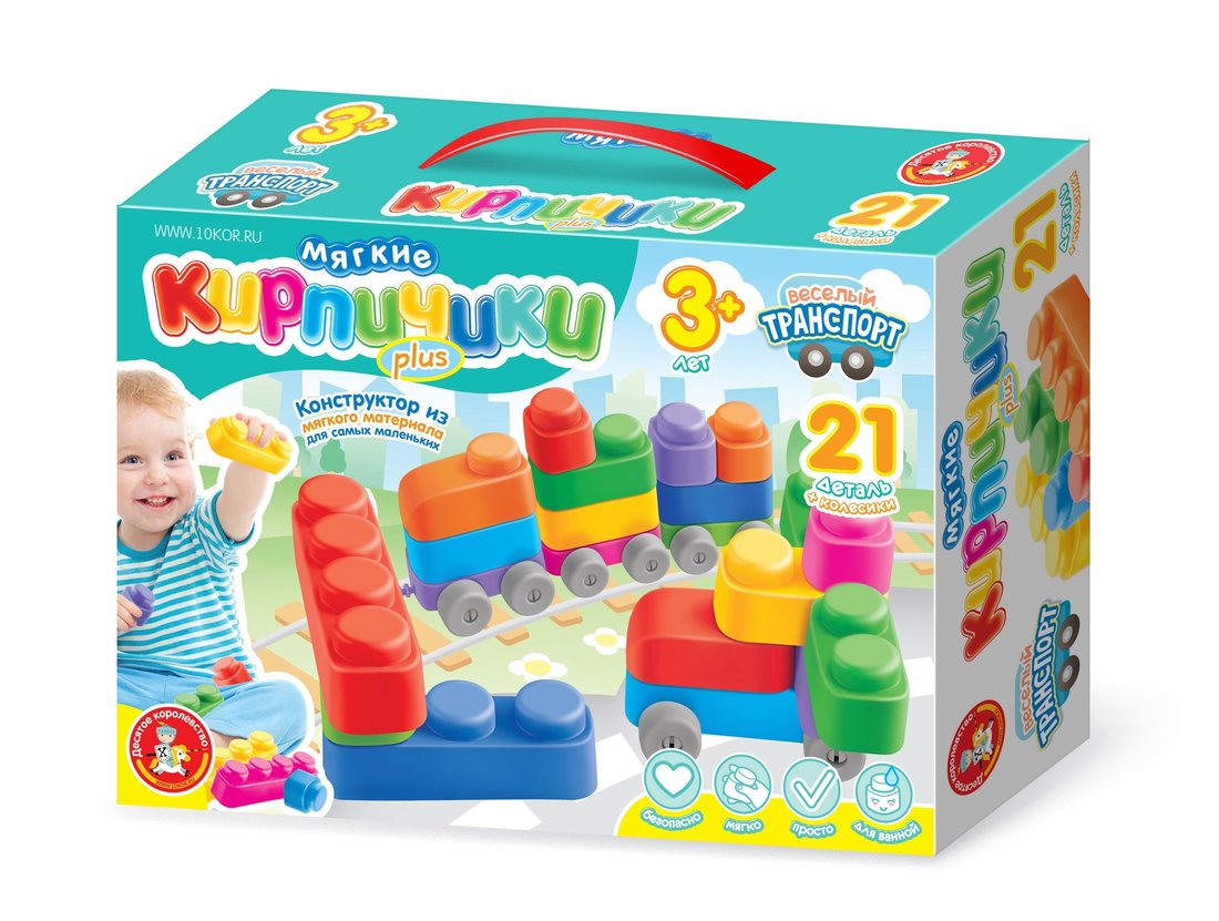Конструктор "Мягкие кирпичики plus. Веселый транспорт" 21 дет+колесики