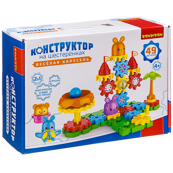 Bondibon Конструктор на шестеренках «ВЕСЕЛАЯ КАРУСЕЛЬ» 49 деталей