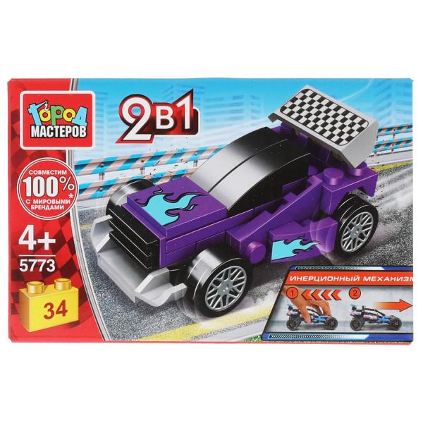 Конструктор СПОРТКАР 2в1 с инерцией, 34 дет. Город мастеров