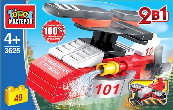 Конструктор ПОЖАРНЫЙ ВЕРТОЛЁТ 2в1, 49 дет. Город мастеров