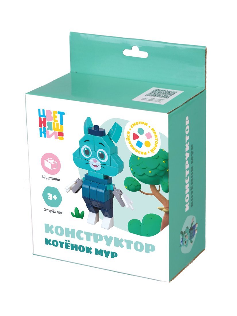 Конструктор блочный "Цветняшки. Котёнок Мур", 49 деталей