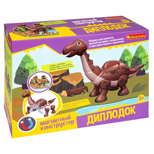 Набор игровой с магнитным конструктором BONDIBON, ДИПЛОДОК