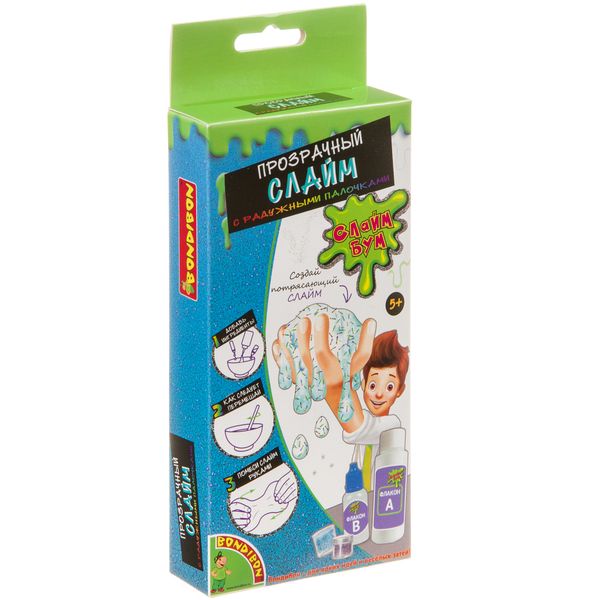 Науки с Буки Bondibon, опыты СЛАЙМ БУМ, Прозрачный слайм с радужными палочками, арт.CH8165/ DC8073