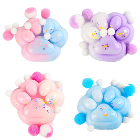 Игрушка-антистресс "ЦВЕТНАЯ КОШАЧЬЯ ЛАПКА С ПОМПОНАМИ", 7*6см, ассорти 4 вида, дисплей, JOLLY JOT (ДЖОЛЛИ ДЖОТ), 665770
