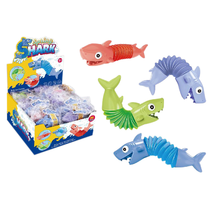 Игрушка-антистресс «Акула-пружинка». Тело акулы выполнено из гибкой гофрированной трубки, благодаря чему оно может вытягиваться, сжиматься и принимать различные формы, издавая при этом неповторимый звук. В ассортименте 4 цвета: красный, синий, фиолетовый, салатовый. Размер игрушки: 12,3*4,5*5 см. Растягивается до 18 см в длину. Поставка в дисплее по 36 шт. Размер дисплея: 22*22,6*11,7 см.