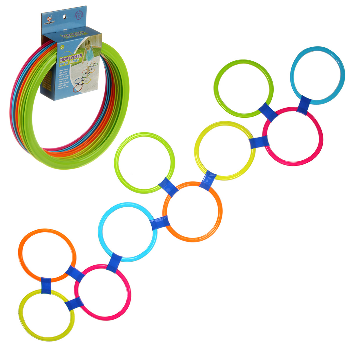 Игра на ловкость Классики понравится каждому ребенку. Детская игра классики выполнена в яркой расцветке, эргономичном дизайне. Набор для игры в классики изготовлен из прочных и долговечных материалов, прослужит много лет. Разные варианты сборки, надежные крепления, замечательная игрушка для дома и улицы, можно играть одному и большой компанией. В комплекте 10 колец, 10 креплений. Соединяем кольца между собой в произвольном порядке. Полимер. Размеры собранной длинной конструкции, как на фото 192х57 см. Размеры кольца 27х0,5 см. Размеры крепления 8х5 см. Размеры в упаковке 27х5х35 см.