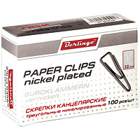 Скрепки никелированные треугольные 32мм, 100шт., с отогнутым носиком, карт. упак.: BK3210n штр.: 4260107451013