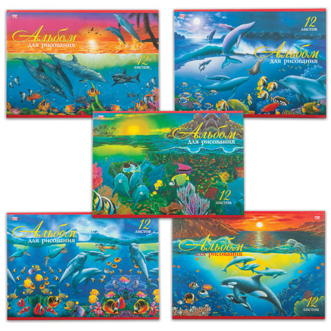 Альбом для рисования, А4, 12 листов, скоба, обложка офсет, HATBER VK, 205х290 мм, "Дельфины", 12А4C, A069936