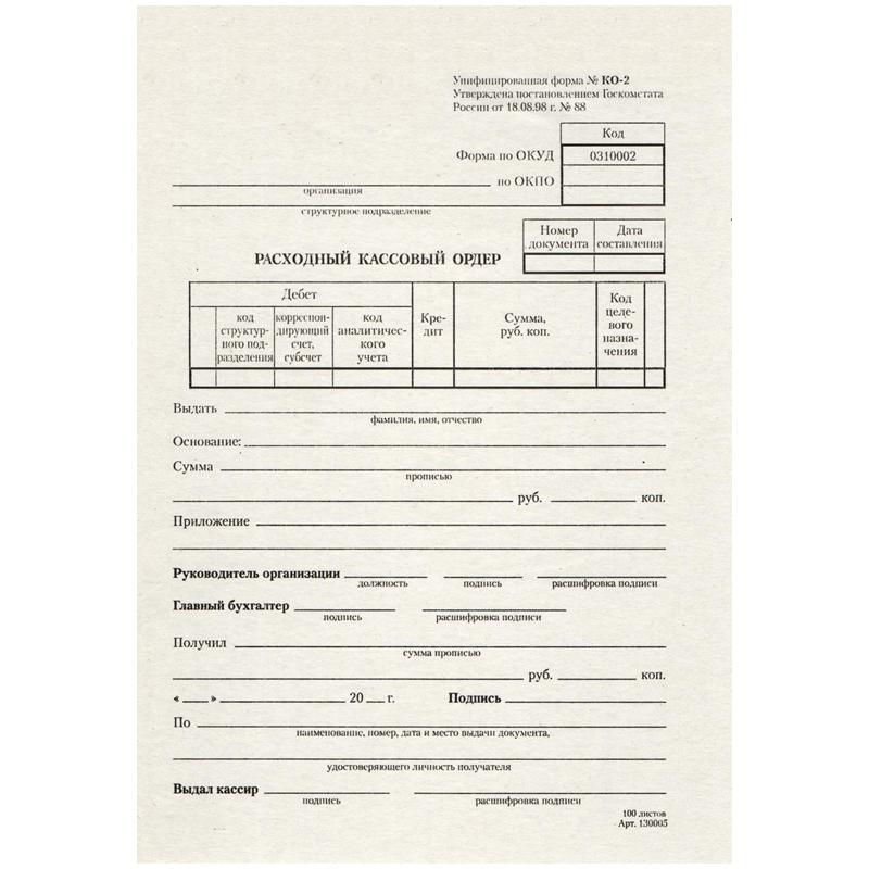 Бланк "Расходный кассовый ордер" А5 (форма КО-2), газетка, 100 экз.: B-RO5-12_485
