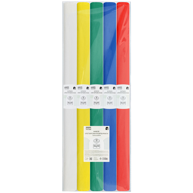 Набор крепированной бумаги ТРИ СОВЫ, 50*250см, 32г/м2, 5шт, ассорти, в рулонах