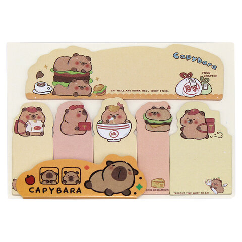 Закладки клейкие бумажные "Капибара" с печатью (6 видов х 15 листов), ассорти, 81278