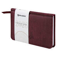 Еженедельник датированный 2026 МАЛЫЙ ФОРМАТ 95х155 мм, А6, BRAUBERG "Wood", под кожу, бордо, 117196
