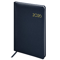 Еженедельник датированный 2026, А5, 145х215 мм, BRAUBERG "Select", балакрон, темно-синий, 117181