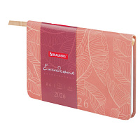Еженедельник датированный 2026 А5 145х215 мм, BRAUBERG "Party", под кожу, коралловый, 117178