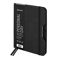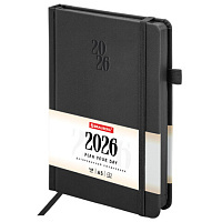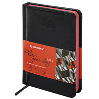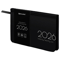 Еженедельник датированный 2026 А5 145х215 мм, BRAUBERG "Party", под кожу, черный, 117180