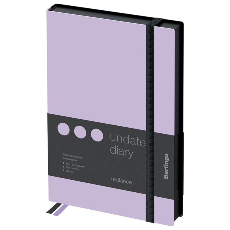 Ежедневники Berlingo Instinct изготовлены из матовой искусственной кожи c эффектом soft-touch. Сочетание двух контрастных цветов обложки: пастельного фиолетового и черного. Полужесткая обложка с прострочкой по корешку. Черный срез блока. Вертикальная черная фиксирующая резинка увеличенной ширины 9мм. Запечатанные форзацы. Внутренний блок из 136 листов высококачественной кремовой бумаги повышенной плотности 80 г/м?, пантонная печать в 2 краски, справочный материал и перфорированные уголки. Индивидуальная упаковка. Подходят под персонализацию: трафаретная печать, УФ-печать, тиснение фольгой, блинтовое тиснение, лазерная гравировка, шильд.