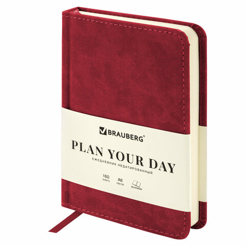 Ежедневник недатированный МАЛЫЙ 100х150 мм А6 BRAUBERG "Status", под кожу, 160 л., красный, 113367