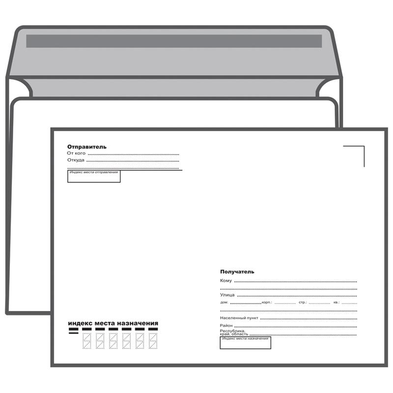 Конверт C5, 162*229 мм, подсказ КУДА-КОМУ, клей декстрин, внутренняя запечатка, 80 г/м2, упаковка 100 шт.