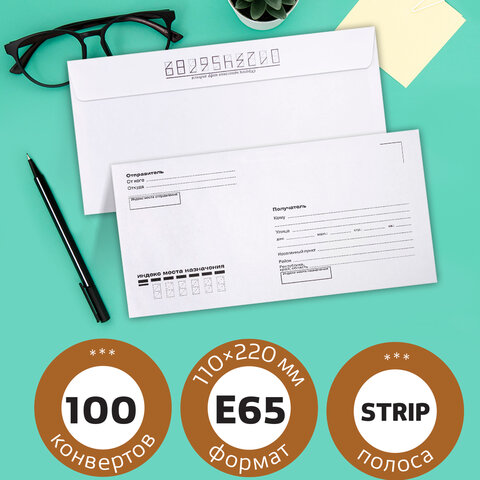 Почтовый конверт BRAUBERG предназначен для рассылки документов, журналов и другой корреспонденции. В конверт формата E65 можно вложить документ формата А4, сложенный втрое. На передней стороне конверта имеются адресные указатели: "Куда", "Кому", "От кого", "Откуда". Плотность бумаги 80 г/м2 позволяет размещать тяжелую корреспонденцию, а внутренняя запечатка поможет скрыть содержимое от посторонних глаз. Отрывная полоса типа STRIP обеспечивает надежное запечатывание конверта и сохранность личного письма или важного документа.