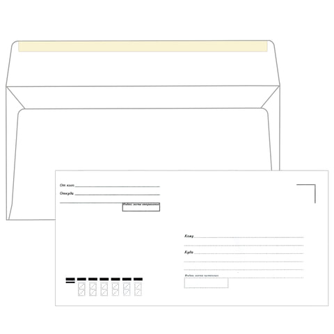 Почтовый конверт Евро "Куда-Кому" предназначен для рассылки писем, открыток и т.п.