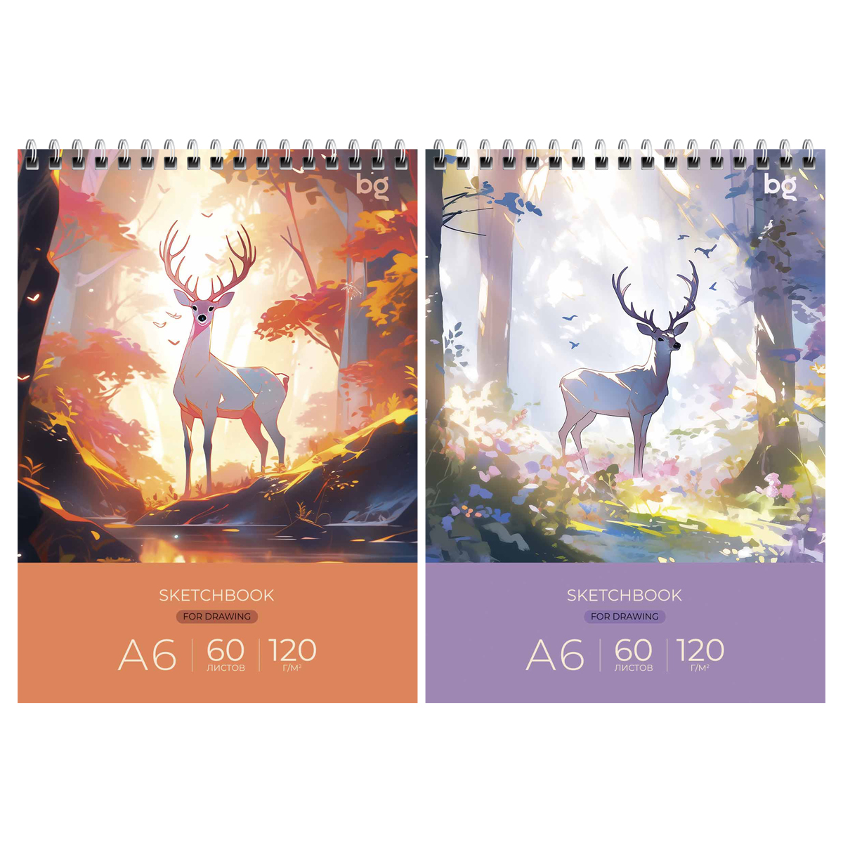 Скетчбук 60л., А6 BG "Сказочный олень", на гребне, глянцевая ламинация, 120г/м2