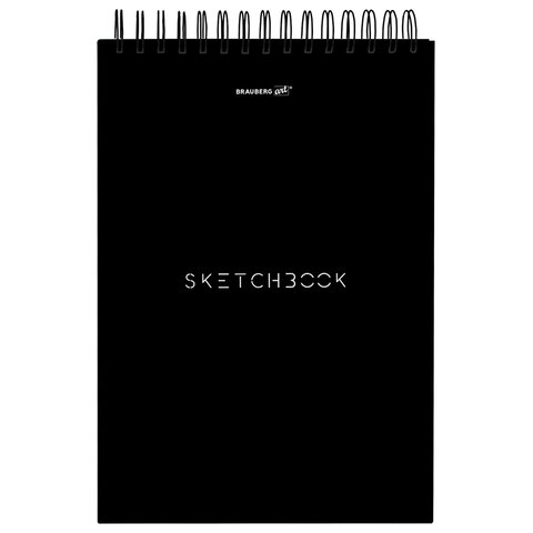 Скетчбук, белая бумага 100 г/м2, 140х201 мм, 60 л., гребень, жёсткая подложка, BRAUBERG ART, Minimal черный, 116900