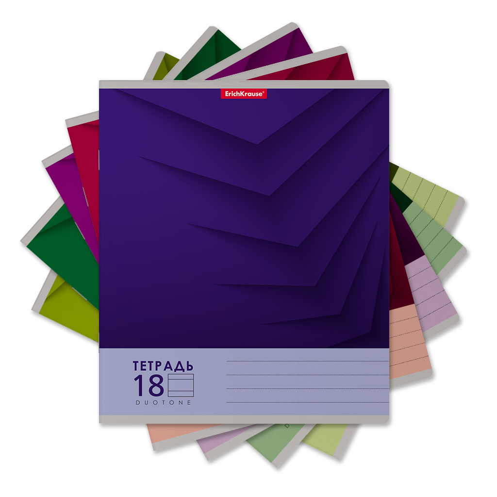 Тетрадь школьная ученическая ErichKrause® Duotone Next ассорти, 18 листов, линейка (в плёнке по 10 штук)_MIX-PACK