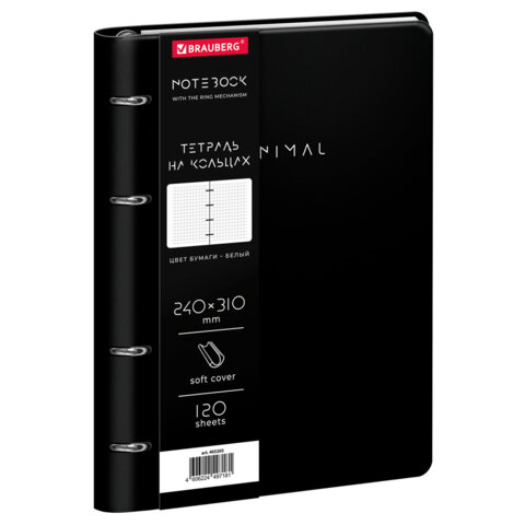Тетрадь на кольцах БОЛЬШАЯ А4 240х310 120л, под кожу, BRAUBERG VISTA, Minimal черный, 405203