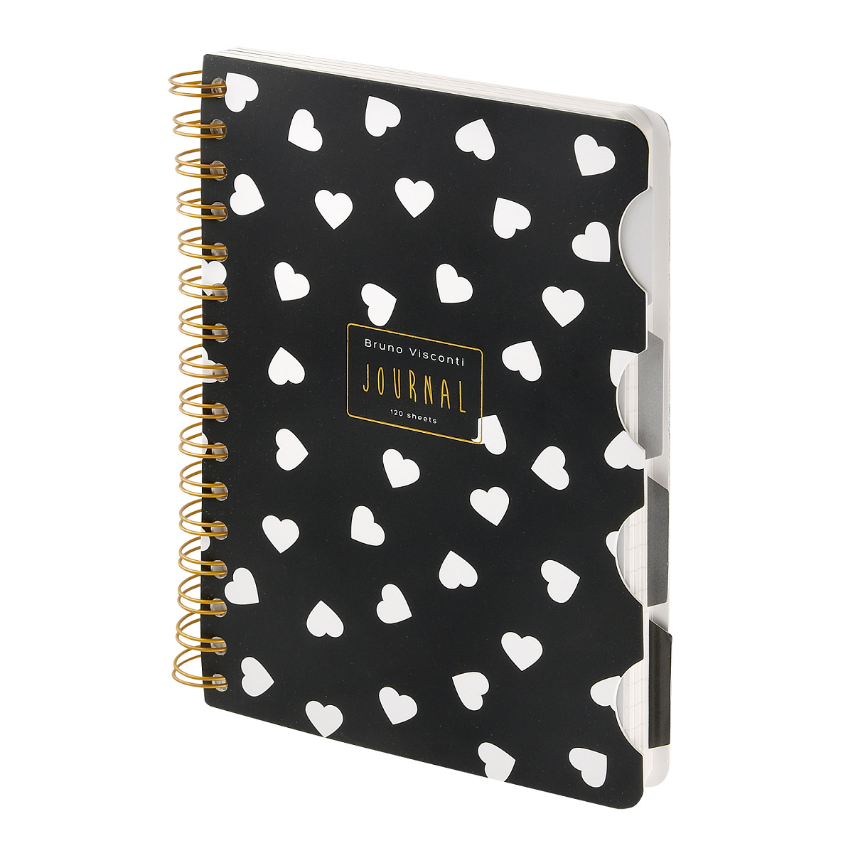 ЗАПИСНАЯ КНИЖКА "ART JOURNAL" А5,120 Л. НА ГРЕБНЕ, С РАЗДЕЛИТЕЛЯМИ "Black&White. СЕРДЕЧКИ"