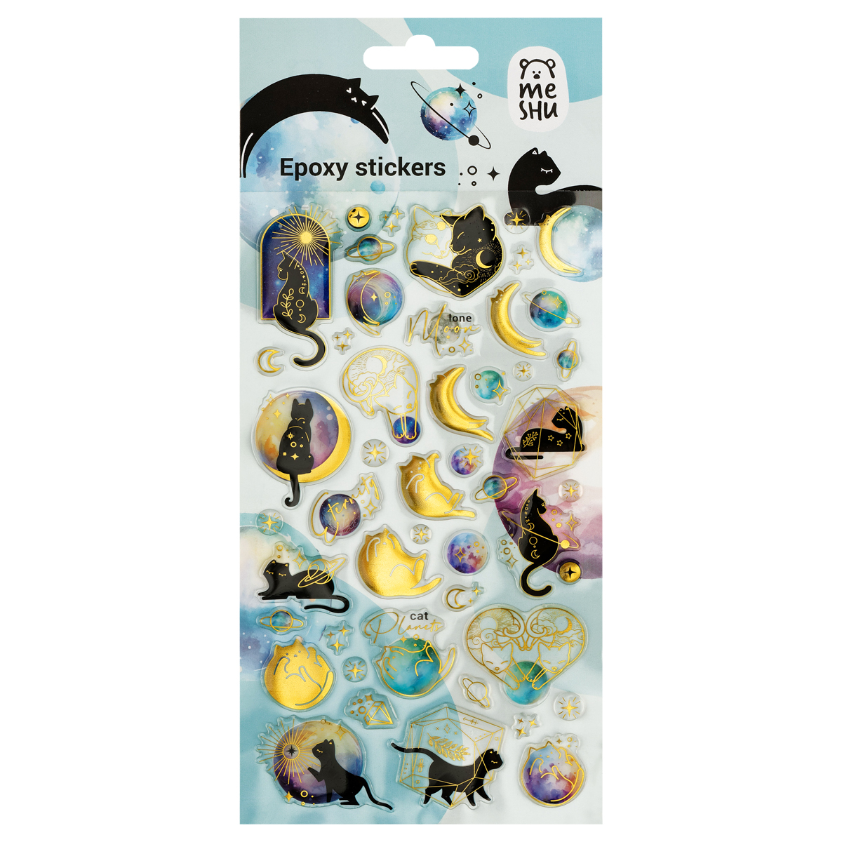 Наклейки гелевые MESHU "Moon cat", 10*23 см, с блестками, пакет европодвес