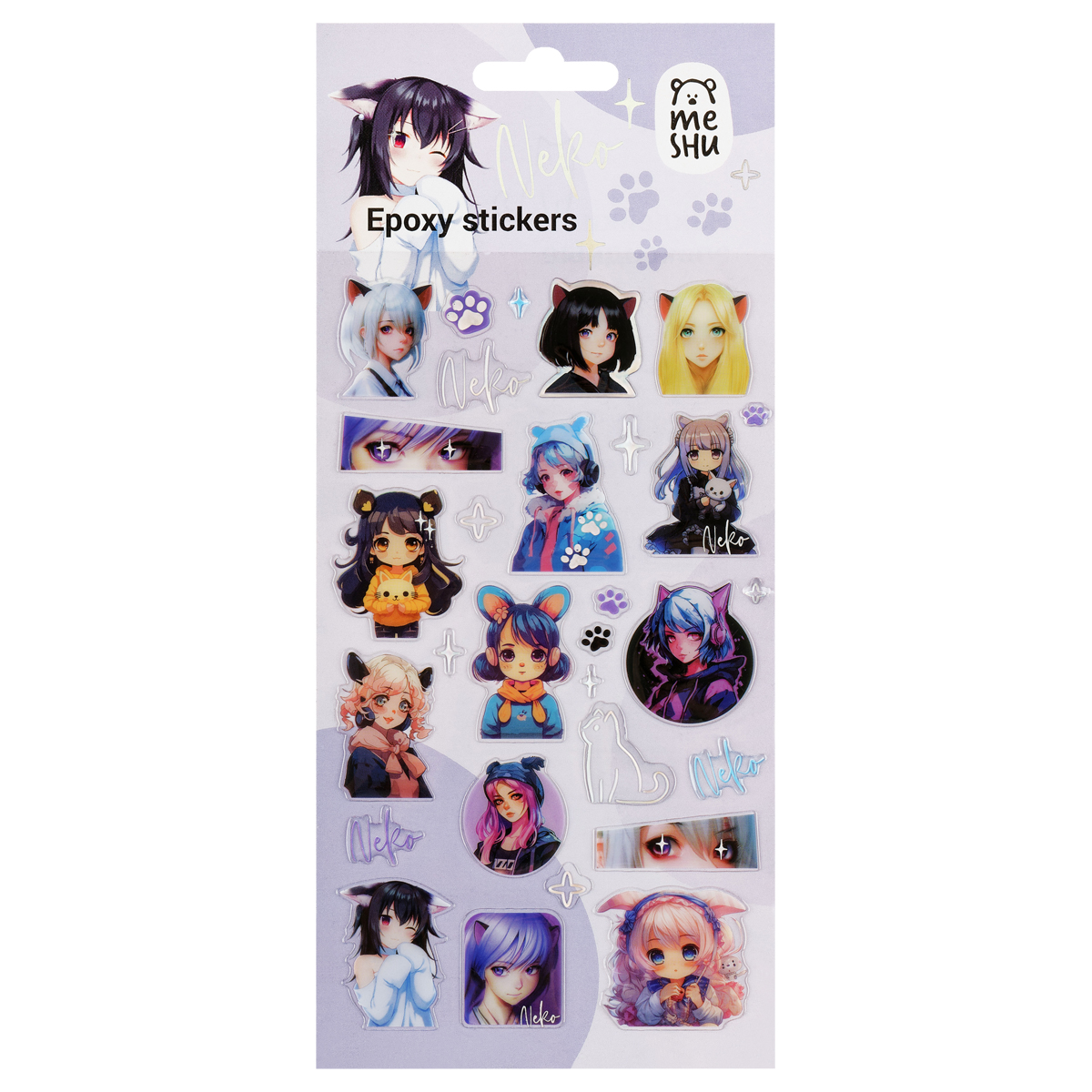 Наклейки гелевые MESHU "Neko", 10*23см, пакет европодвес