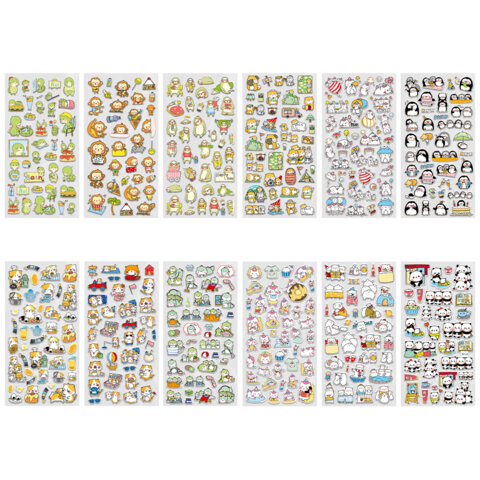 Наклейки гелевые "Зверяшки-обаяшки", 17,5х9 см, ассорти 12 видов, FUNSTER (ФАНСТЕР), 666085