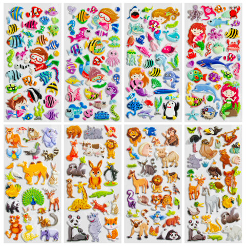 Наклейки зефирные "Животный мир", 19х9,5 см, ассорти 8 видов, FUNSTER (ФАНСТЕР), 666089