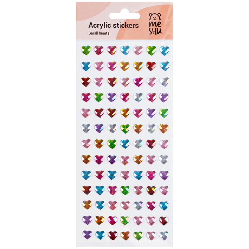 Наклейки акриловые MESHU "Small hearts", 25*10см, стразы, 91 наклейка, инд. уп., европодвес